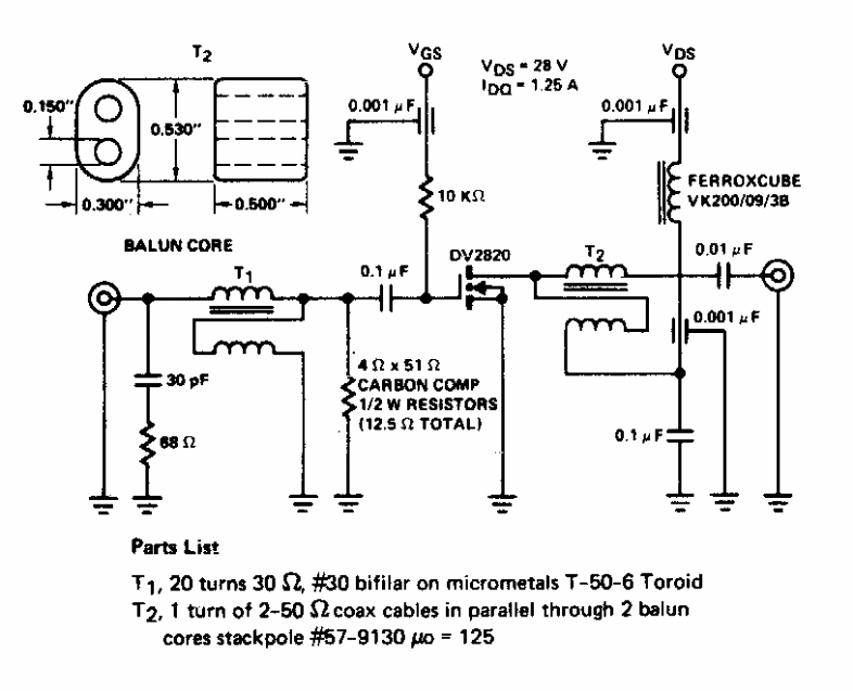 Operando na faixa de 3 a 100 MHz, este circuito foi encontrado numa documentação dos anos 70. Observe a bobina. O transistor de efeito de campo é um componente da época.