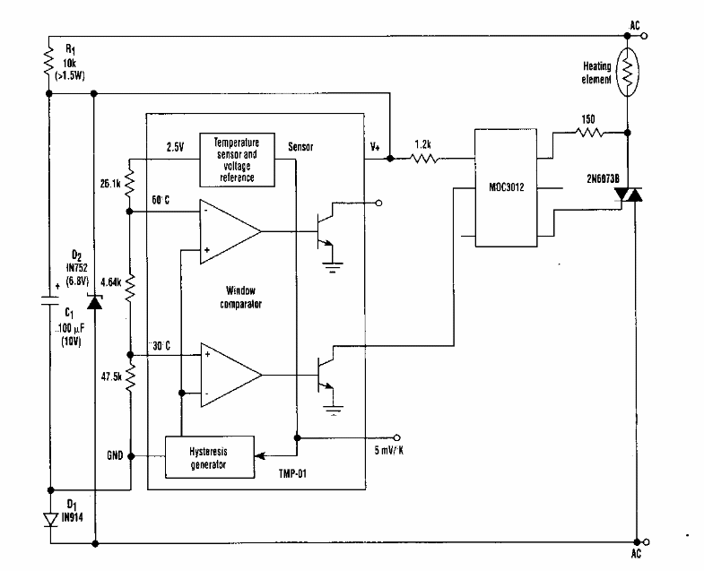 Este circuito foi encontrado numa Electronic Design dos anos 90. Ele faz uso de componentes da época. O triac é de acordo com a carga controlada.