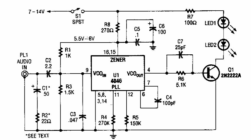 Este circuito foi encontrado numa Popular Electronics dos anos 90. O circuito integrado CMOS usado não é muito comum atualmente. O alcance depende os LEDs infravermelhos usados. R7 pode ser alterado.