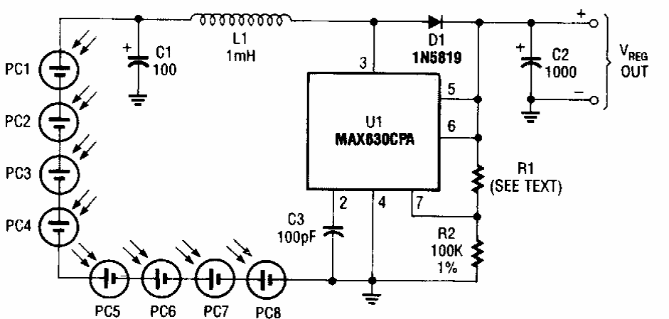 Este circuito foi encontrado numa documentação da Maxim dos anos 90. É válido para os tipos de menor rendimento da época. A fonte fornece 4,8 ou 7,2V sob corrente de 15 mA com uma entrada de 3V. a eficiência do regulador é de 70%