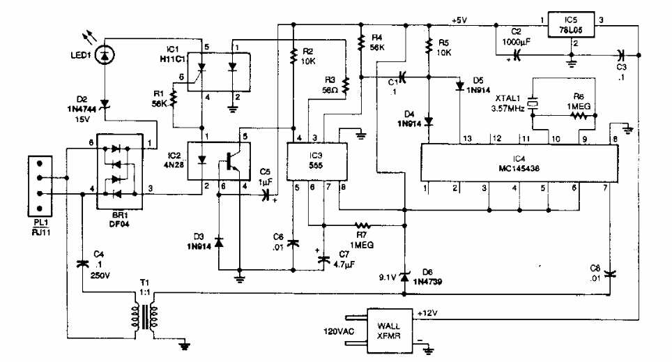 Este circuito foi encontrado numa Electronics Now, ele pode ser usado com telefones universais numa linha particular comum.
