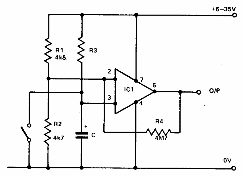 Este circuito aparece em outros pontos desta seção e deste site vindo de outras origens. Esta é de uma documentação americana dos anos 80. A fonte não precisa ser simétrica.