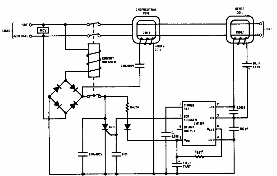 Este circuito para indicar falhas de aterramento foi encontrado numa documentação dos anos 80. Ele faz uso de transformadores de linha enrolados em núcleos de ferrite.