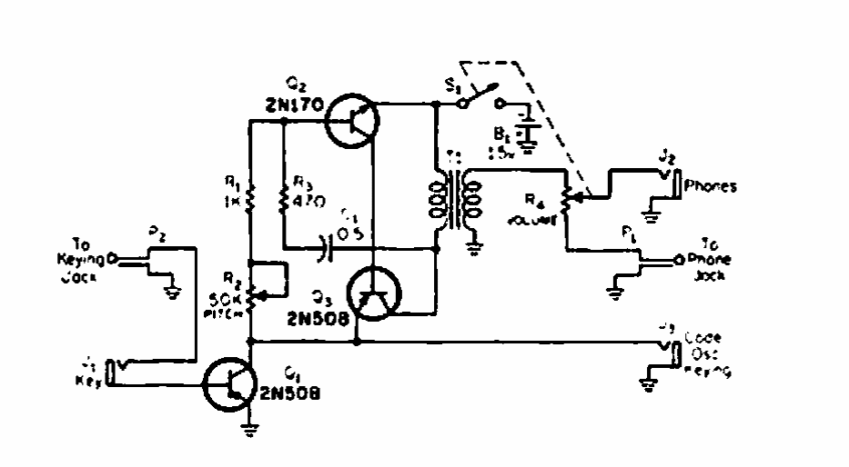 Este circuito para monitorar transmissões de telegrafia foi encontrado numa revista CQ de 1975. Os transistores podem ser equivalentes modernos.