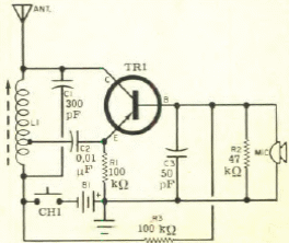 Este pequeno microfone sem fio para a faixa de AM foi obtido numa Eletrônica Popular de agosto de 1967. A bobina pode ser enrolada num bastão de ferrite com 30 + 50 espiras de fio 28 a 32.