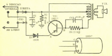 Este circuito oscilador de áudio muito simples foi encontrado numa Eletrônica Popular de maio de 1967. O transformador é de saída para transistores e o transistor qualquer PNP de uso geral.