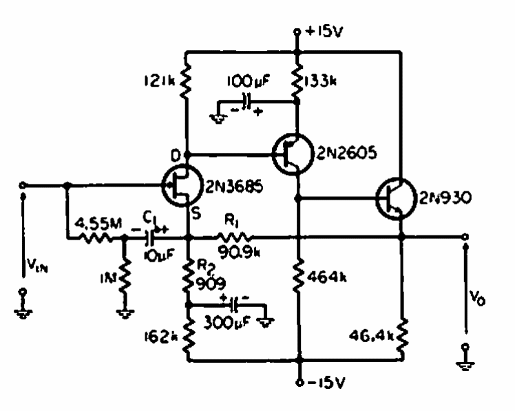 Este circuito foi encontrado numa documentação americana antiga. Ele tem 40 dB de ganho entre 10 Hz e 10 kHz. Transistores equivalentes modernos podem ser utilizados.