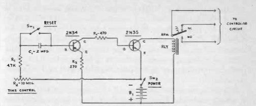 Este circuito com transistores de germânio foi encontrado numa documentação americana de 1956. O relé é de 3 500 ohms e a alimentação de 6 V.