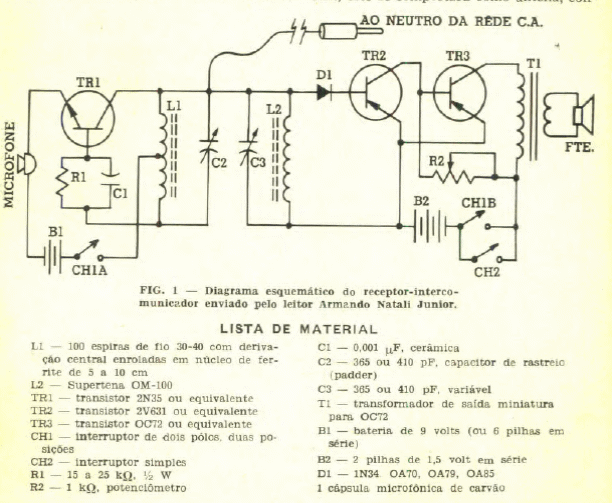 Encontramos este intercomunicador por fio que envia um sinal modulado de RF a um receptor distante. Com isso, a atenuação e a sensibilidade ao ruído são menores.