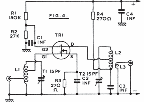 Encontrado numa documentação inglesa antiga este circuito se destina a amplificar sinais da faixa de radioamadores de 2 metros. Detalhes da bobina não são fornecidos.