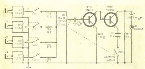 Esta configuração de mixer de uma publicação de 1967 pode ser adaptada para operar com transistores modernos. O número de canais também pode ser alterado.