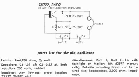 Este circuito aproveita a indutância do fone no circuito ressonante. O circuito é de 1960, sendo usado transistor de germânio da época.