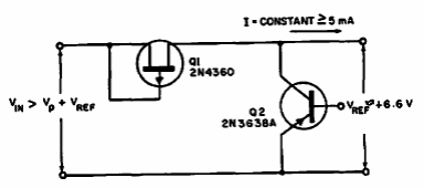 Este regulador de 6V com FET foi encontrado numa antiga Electronic Design. O FET e o transistor admitem equivalentes modernos.