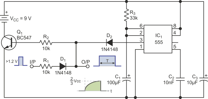 Na condição de espera, o consumo deste circuito de timer é praticamente nulo. A ideia é uma configuração que reduz drasticamente a corrente quiescente. Encontramos em documentação da Internet.
