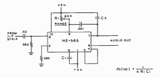Este circuito foi encontrado numa documentação de 1977. O circuito integrado usado é um PLL.