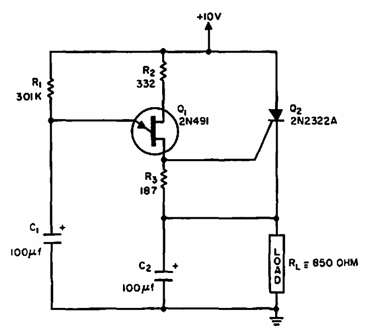 Esta chave de retardo de 40 segundos foi encontrada numa Electronic Design de 1965. O transistor unijunção pode ser o 2N2646 e o SCR um equivalente moderno sensível.
