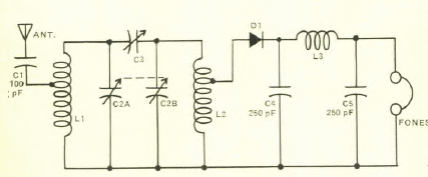 Este circuito foi encontrado numa Eletrônica Popular de nov/dez de 1967. A bobina tem 100 espiras de fio 28 num tubo de PVC de uma polegada. A tomada é na 30a espira a partir do lado do terra.