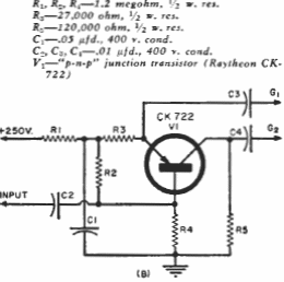 Esta é uma das muitas configurações de inversor de fase que o leitor pode encontrar neste site. Encontramos num manual de transistores dos anos 60. O transistor é de germânio da época.