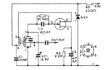 Este oscilador para recepção de sinais de SSB se destina a receptores com FI de 455 kHz. O circuito é de uma documentação inglesa e a bobina é uma FI de rádio comum.