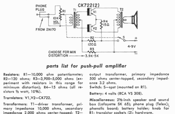 Usando transistores da época, este circuito foi encontrado em manual de transistores de 1960. Os transformadores são os componentes críticos. Os transistores são de germânio.