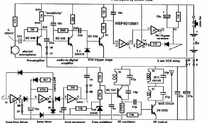 Encontramos este circuito em uma documentação australiana de 1991. O circuito é indicado para montagem SMD tornando-se assim muito pequeno. O circuito era vendido em kit na época.