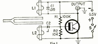 Este circuito eletromecânico com transistor foi encontrado numa Radio Electronics de junho de 1952. O circuito deve ser acoplado a um amplificador e o transistor pode ser qualquer PNP de uso geral de germânio da época.