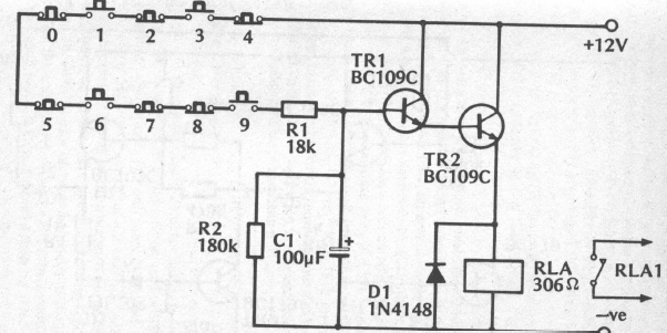 Esta chave de combinação ou chave de código foi encontrada numa documentação antiga. O consumo é muito baixo e os transistores podem ser equivalentes como os BC548.