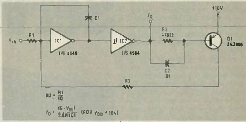 Encontrado na revista Radio Electronics de setembro de 1984, este circuito faz uso de componentes comuns. As características de disparo são dadas pela fórmula junto ao diagrama.