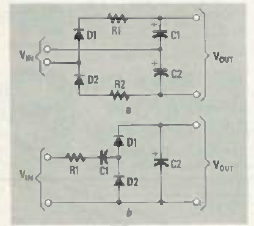 Na figura temos duas configurações simples de dobradores de tensão. Resistores e diodos são selecionados de acordo com as tensões e correntes.desejadas.