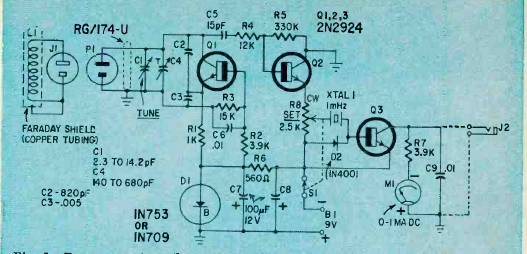 Este circuito foi descrito num artigo da revista Radio Electronics de novembro de 1967. O circuito de 3 transistores tinha saída em fone de ouvido e instrumento indicador. A bobina exploradora era enrolada numa forma plástica de grande diâmetro com espiras para ressoar em 1 MHz.