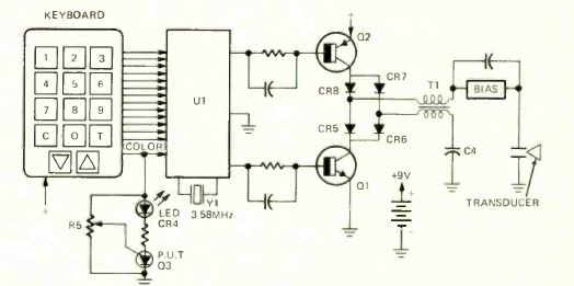 Este transmissor para controle remoto digital ultrassônico foi encontrado na revista Radio Electronics de janeiro de 1976. Os componentes são da época. O CI é da época.