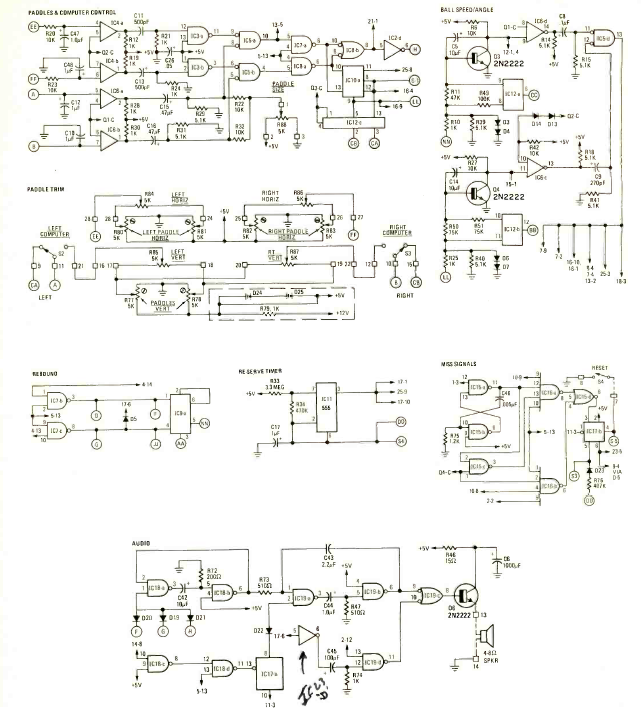 Este é um dos primeiros games que surgiu nos anos 70. Este é de uma revista Radio Electronics de junho de 1976 usando componentes da época. O jogo é o tele-tenis que logo depois saiu aqui em uma versão mais simples e de melhor desempenho.