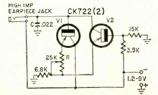 Este circuito básico de um oscilador transistorizado foi encontrado na revista Radio Electronics de março de 1961. O circuito é alimentado com tensões de 1,5 V a 9 V.