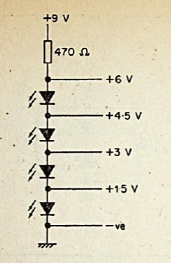 Usando LEDs vermelhos com tensões de acendimento da ordem de 1,5 V podemos fazer uma referência múltipla de tensão. A corrente é baixa.