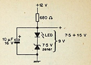 Na figura temos o modo de se usar um LED para aumentar a tensão de um zener. O aumento depende da cor do LED. A corrente é baixa.