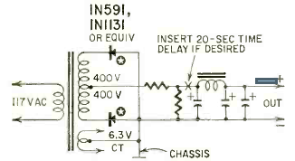 Esta fonte com diodos de silício numa época em que ainda se usavam válvulas foi encontrada na revista Radio Electronics de julho de 1959. Os diodos dependem do transformador assim como a tensão.
