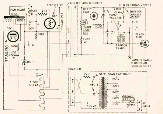 Este circuito foi encontrado na revista Radio Electronics de março de 1961. Com apenas um transistor ele usa um transformador inversor e também tem entrada para alimentação pela rede de energia.