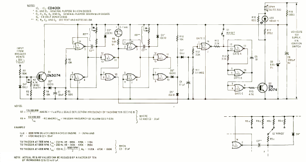 Encontramos este circuito numa Radio Electronics de outubro de 1976. Os componentes ainda são comuns, mas o circuito se aplica a modelos de carros antigos com ignição com platinado.