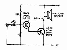 Este amplificador foi encontrado numa publicação inglesa dos anos 60. Os transistores são de germânio da época. Podem ser usados transistores de silício modernos com eventuais alterações dos resistores.
