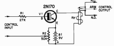 Indicado como bloco amplificador aplicações diversas, este circuito foi obtido numa documentação de 1966. O transistor é de germânio da época e o relé sensível é de acordo com a tensão de alimentação.