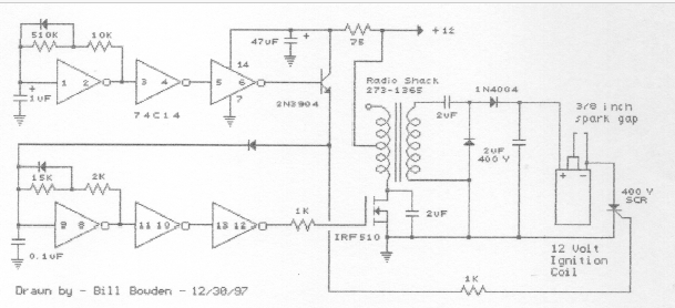 Encontramos este circuito numa documentação dos anos 80. O circuito é para carros com platinado. Os componentes de potência devem ser dotados de dissipadores de calor.