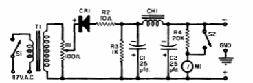 Esta fonte simples para transistores foi encontrada em documentação dos anos 40. O transformador tem secundário de 25 V na publicação original, mas pode ser de 12 V com 500 mA a 800 mA.