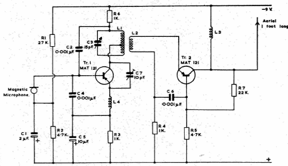 Empregando transistores da época, este circuito foi encontrado numa documentação de 1963. As bobinas são de acordo com a faixa de frequências desejada.