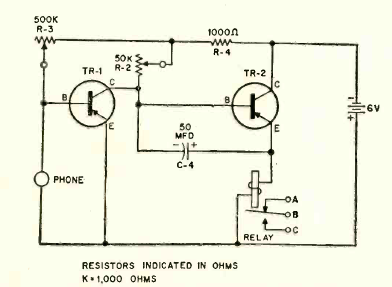 Encontramos este circuito que fazia parte de um conjunto didático numa revista Radio Electronics de junho de 1961. Os transistores são de uso geral de germânio da época. O fone de cristal serve como microfone.