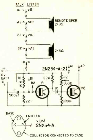 Encontramos este circuito de 2 transistores na revista Radio Electronics de julho de 1961. O circuito é para dois cabais, mas pode ser adaptado para mais canais.