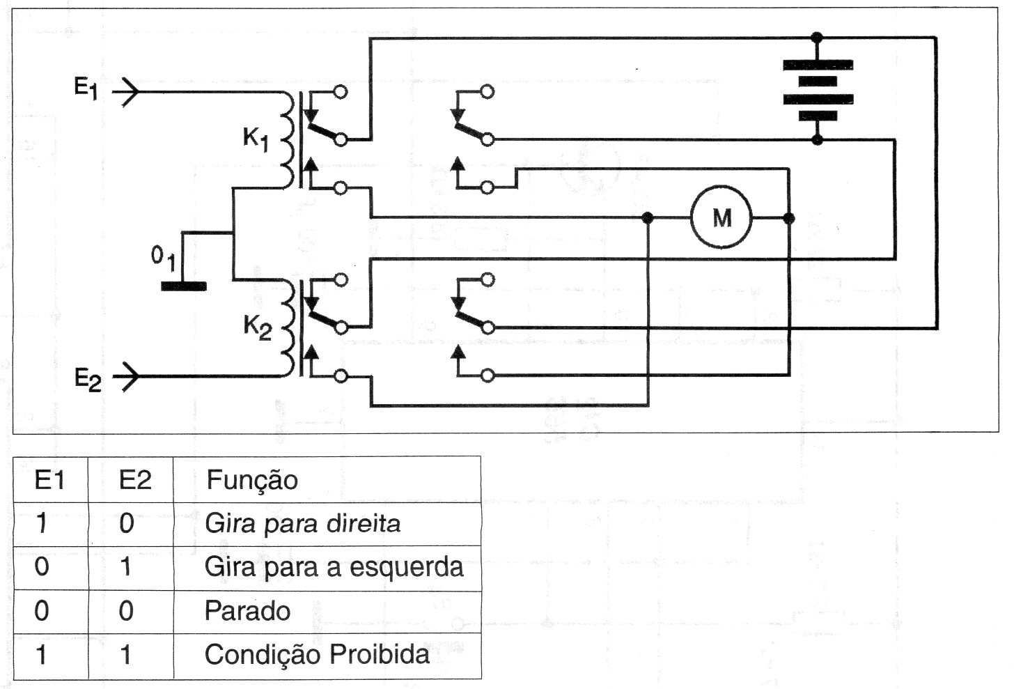 Um pouco mais complexo que o anterior, já podendo ser chamado de shield, este circuito pode ser usado no controle de movimento de um robô, atuando sobre o motor. Dois motores devem ser usados em controles semelhantes, havendo duas entradas lógicas de controle. O circuito pode ser facilmente adaptado para operar como um shield de microcontrolador utilizando-se relés sensíveis de 5 V.
