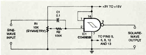 Encontramos este circuito num artigo da revista Electronics Now de março de 1996. A frequência está limitada a alguns megahertz e a alimentação deve ficar na faixa indicada que também determinará tensão de pico do sinal de entrada.