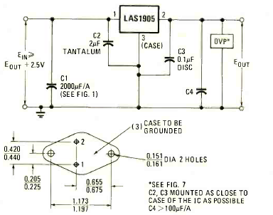 Este regulador pouco conhecido hoje foi encontrado num circuito da Radio Electronics de dezembro de 1978. O circuito fornece 5 V com uma corrente máxima de 3 A.