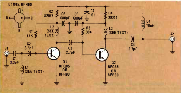 Criado para servir de reforçador para sinais de TV na faixa de UHF, este circuito foi encontrado na revista Radio Electronics de março de 192. A montagem é crítica, exigindo layout especial da placa.