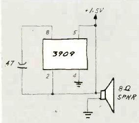 Esta é a versão básica de um pequeno oscilador de [áudio com o LM3909. O circuito deve ser alimentado com 1,5V e o capacitor determina a frequência do sinal.
